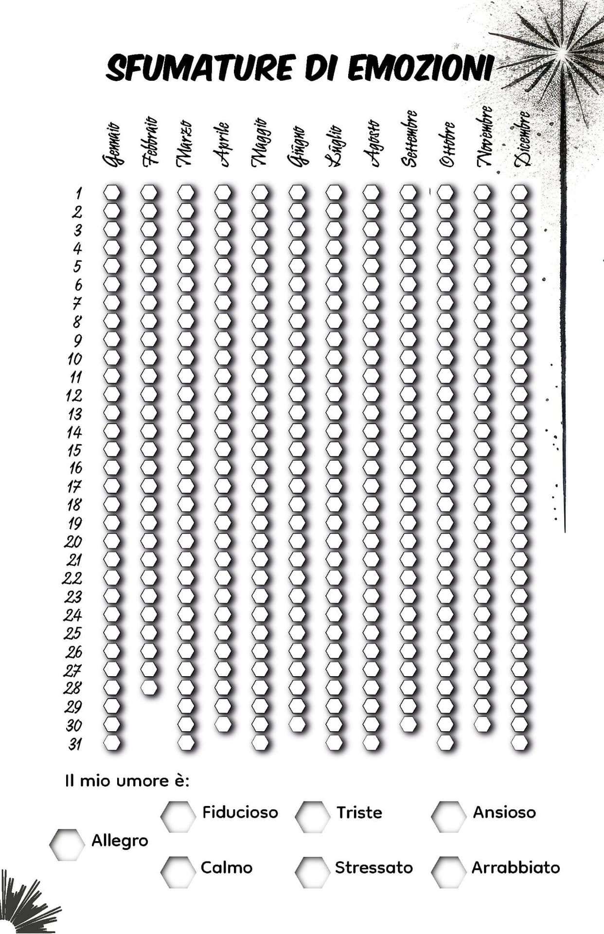 I nostri Tracker sono un punto di riferimento visivo: offrono una panoramica immediata dellβanno utile per monitorare la propria crescita e riconoscere i propri pattern emotivi.Β