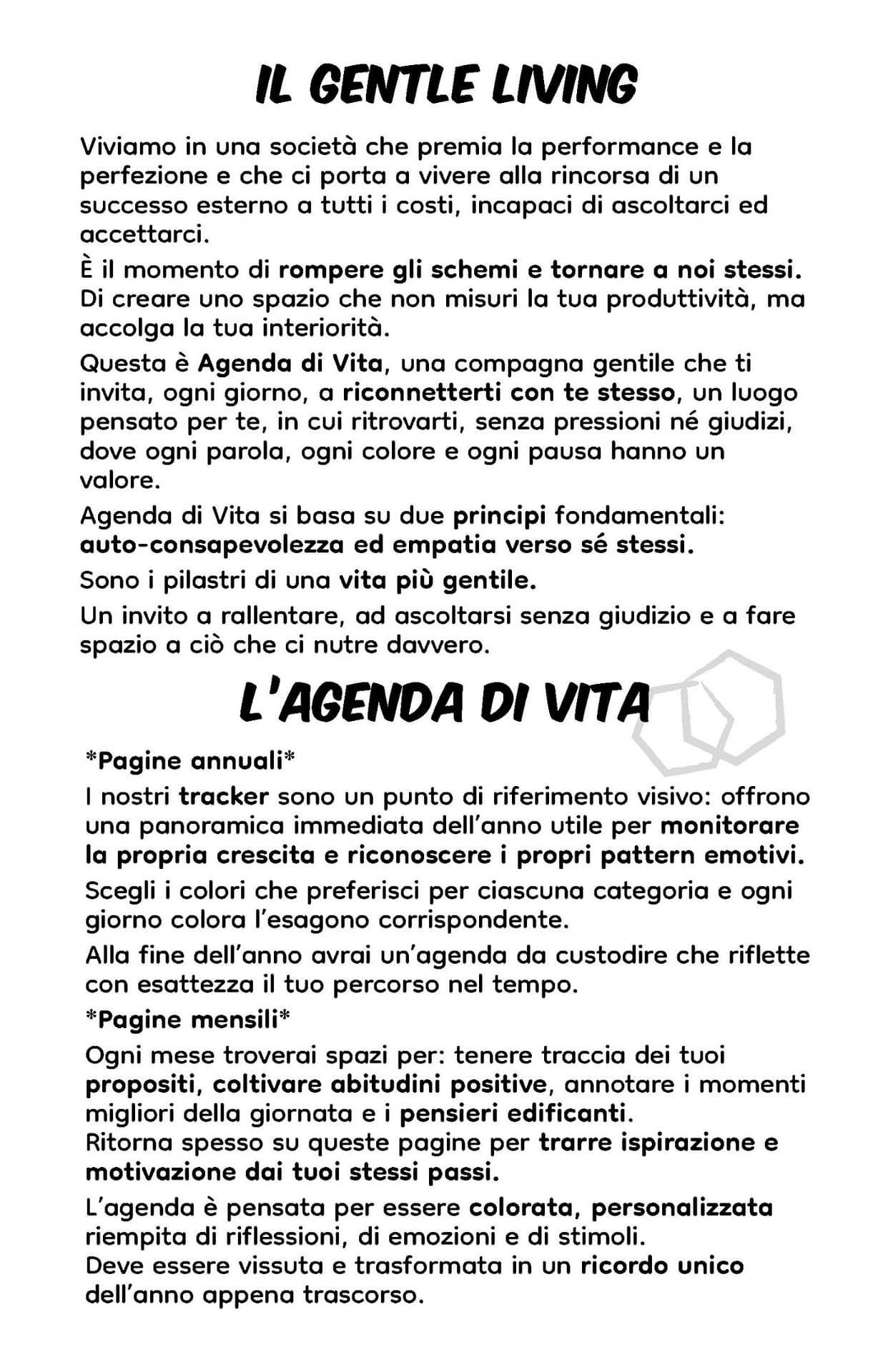 Agenda di Vita Γ¨ diversa. Non ti impone obiettivi irraggiungibili, non ti dice chi devi diventare, non ti mette pressione per fare sempre di piΓΉ.